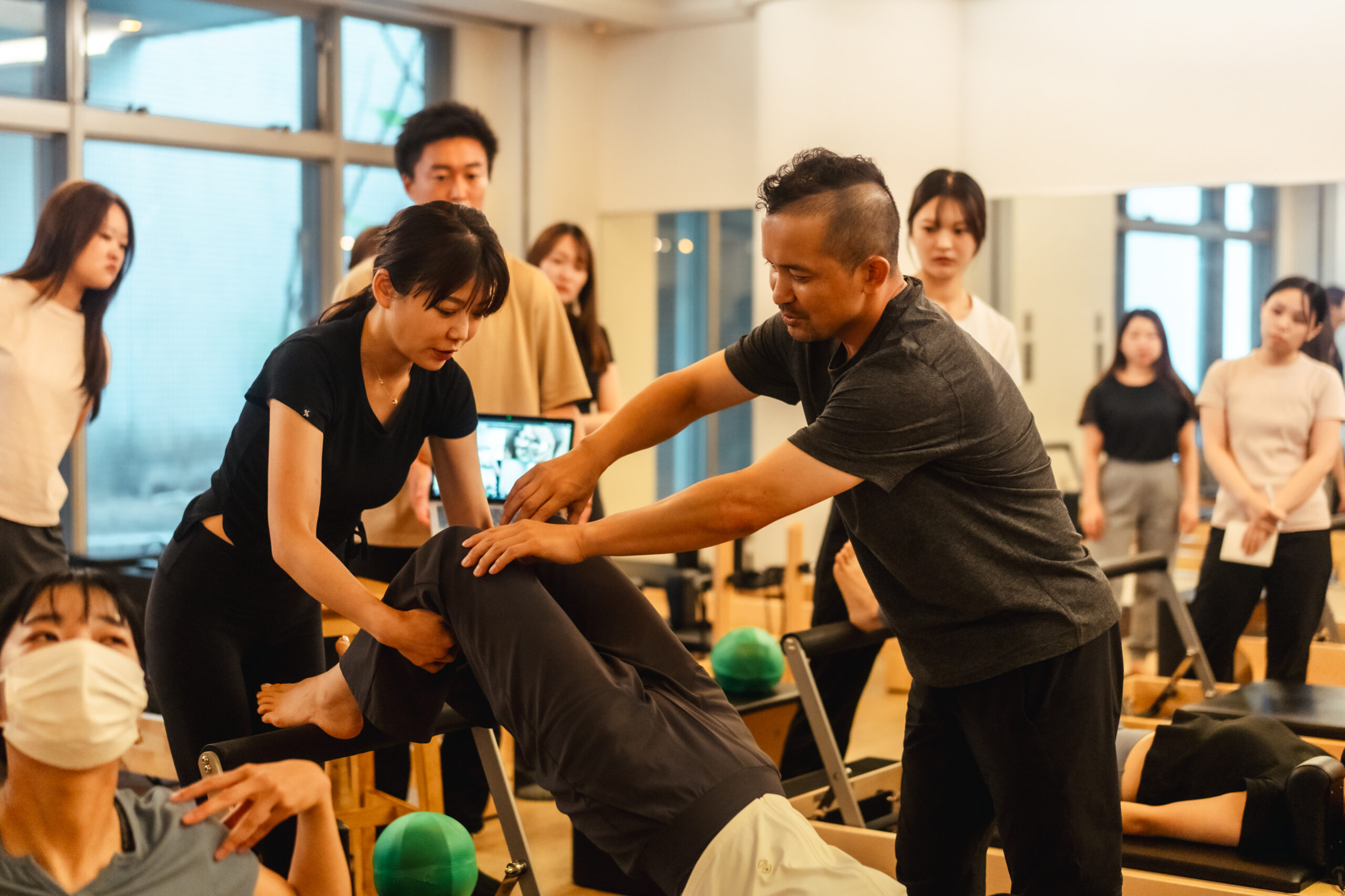 リフォーマーを用いた基礎エクササイズを体系的に学習し、指導者として欠かせない「動きを見極める力」を養う貴重な機会となりました。